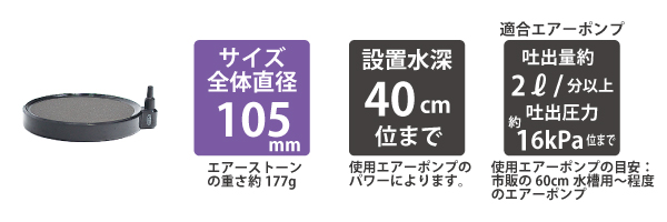 ●本品使用後にエアーポンプからの通気を止めて、そのまま水中に長時間放置した後に通気を再開するとエアーストーンから泡が出てくるまで少し時間がかかることがございます。