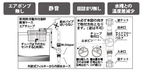 エアリフト式で水を送る外付け産卵飼育箱にもエアポンプもいらず、静音、目詰まりもなく快適に使用できます。